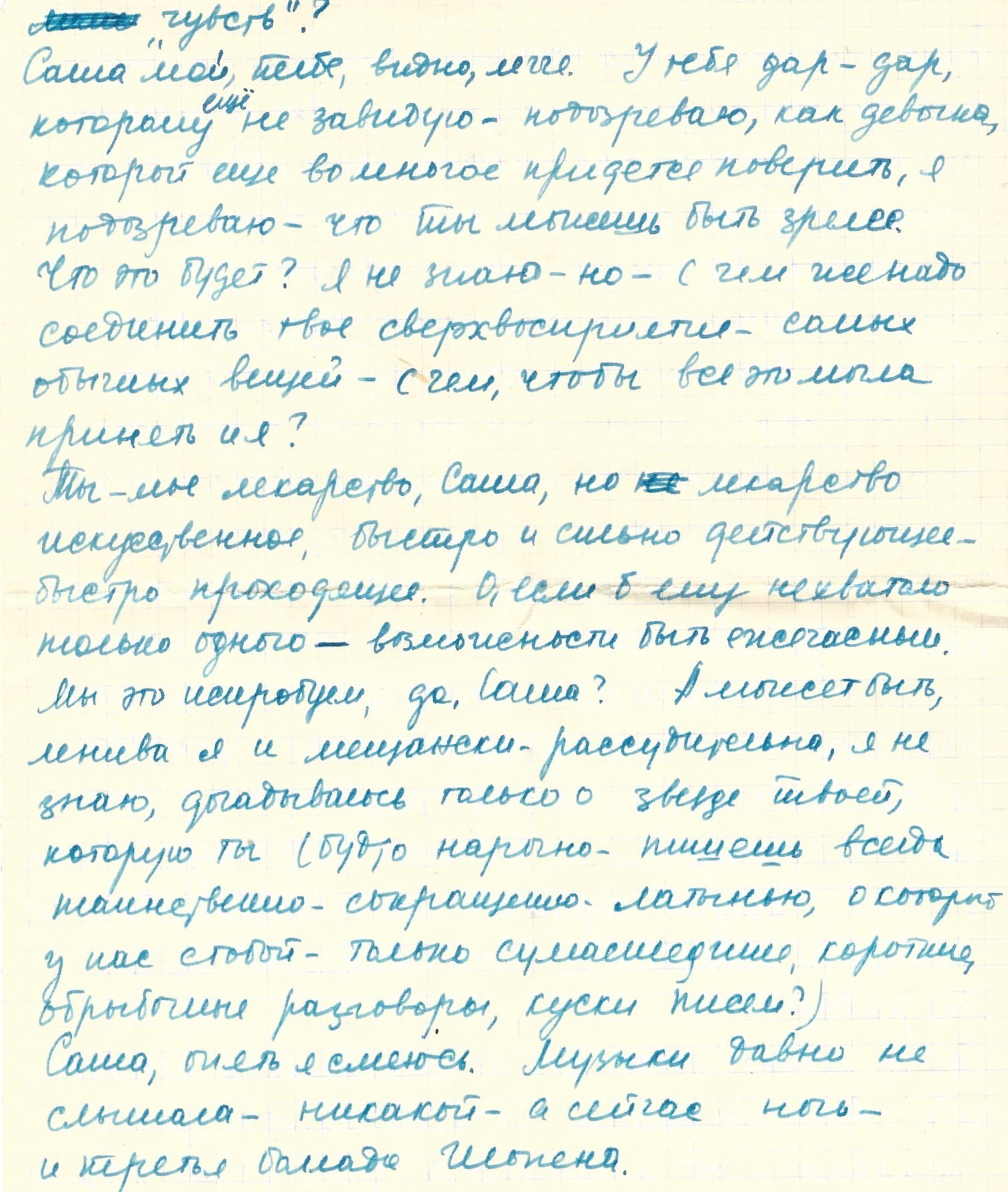 Боюсь поверить, но — твой постоянный усложненный нытик счастлив, Саша, он счастлив — тобою.
